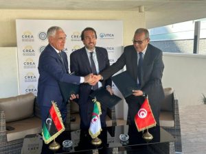 Le Conseil du renouveau économique algérien (CREA), l’Union tunisienne de l’industrie, du commerce et de l’artisanat (UTICA), et l’Union générale des chambres de commerce, d’industrie et d’agriculture Libyenne (GUCC) ont convenu, lundi à Alger, de créer un conseil de partenariat. Ce mécanisme vise à contribuer à l’effort de complémentarité économique entre les trois pays, selon un communiqué commun.L’annonce de cette instance de coopération a été faite lors d’une rencontre de concertation regroupant Kamel Moula, président du CREA, Samir Majoul, président de l’UTICA, et Mohammed Raied, président de la GUCC, précise le communiqué.Le conseil s’inscrit “en droite ligne avec la volonté politique exprimée lors de la réunion de concertation au sommet” qui a réuni en avril dernier le président algérien Abdelmadjid Tebboune, le président tunisien KaisSaied, et le président du Conseil présidentiel de l’Etat libyen Mohammed El Menfi. Ces dirigeants ont souligné leur détermination à renforcer la sécurité, la stabilité et la complémentarité économique dans les trois pays et dans la région.Ce mécanisme permettra d’examiner la mise en place de partenariats à haute valeur ajoutée entre les opérateurs des trois pays, qu’ils soient publics ou privés, et de les intégrer dans les chaînes de valeur mondiales, selon le communiqué. L’objectif est de renforcer les bases du développement global, directement bénéfique pour les peuples des trois nations.Les trois organisations patronales ont également appelé à “accélérer la création de zones de libre-échange et à établir des zones industrielles intelligentes dans les zones frontalières communes”. Elles ont convenu d’organiser périodiquement des rencontres d’affaires et de partenariat réunissant les différents acteurs économiques des secteurs public et privé, alternativement dans les trois pays, afin de promouvoir une plus grande ouverture des marchés algérien, tunisien et libyen.Le CREA, l’UTICA et la GUCC ont réaffirmé leur engagement à renforcer le rôle du secteur privé dans les efforts communs de développement économique et commercial des trois pays, afin de relever les défis actuels et de s’adapter aux mutations économiques mondiales.Ils ont souligné l’importance du “sommet qui a réuni les présidents des trois pays en avril dernier à Tunis” pour concrétiser les aspirations des peuples algérien, tunisien et libyen en matière de stabilité, de progrès et de développement.À l’issue de la rencontre, un mémorandum d’entente a été signé entre les trois parties pour formaliser leur volonté de s’engager concrètement dans le développement économique commun des trois pays.