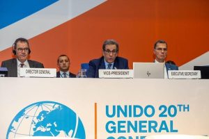 L’Algérie, représentée par son délégué permanent à Vienne, l’ambassadeur Larbi Latroche, a été élue à la vice-présidence de la 20e session de la Conférence générale de l’Organisation des Nations Unies pour le développement industriel (ONUDI), qui s’est déroulée à Vienne (Autriche) du 27 novembre au 1er décembre. Cette élection de l’Algérie à la vice-présidence de l’ONUDI, au nom du groupe africain, s’inscrit dans la dynamique de la diplomatie algérienne aux niveaux régional et international, sous la direction du président de la République, M. Abdelmadjid Tebboune. En qualité de vice-président de la session, l’ambassadeur Latroche a présidé les séances de la conférence, dont le thème était “Mondialisation équitable : solution novatrice pour l’industrie de demain”. Lors du débat général en tant que chef de la délégation algérienne, l’ambassadeur Latroche a souligné que “le développement industriel en Algérie est un objectif d’importance nationale et un choix stratégique, constituant le principal moteur d’un projet économique productif”. Par ailleurs, la délégation algérienne a informé les participants des efforts déployés pour renforcer l’arsenal juridique national afin d’intégrer la dimension climatique dans les différentes politiques publiques de développement, conformément aux engagements internationaux de l’Algérie. Dans ce contexte, les membres de la délégation ont mis en avant le rôle du Commissariat aux énergies renouvelables et à l’efficacité énergétique (CEREFE) dans la création d’une synergie entre les différents secteurs en faveur du développement des énergies renouvelables en Algérie, notamment l’hydrogène vert. Au niveau continental, la délégation algérienne a salué la nouvelle stratégie de l’ONUDI pour l’Afrique 2023-2025, appelant le directeur général de l’organisation à “accélérer le développement de programmes répondant aux besoins et aux aspirations de l’Afrique”. Dans le cadre de sa contribution à la relance du développement en Afrique, l’Algérie organisera, du 5 au 7 décembre 2023, la 2e édition du Congrès africain des start-up, comme annoncé aux participants par le chef de la délégation algérienne.