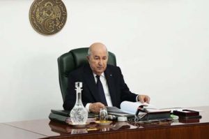 “Le Président de la République, M. Abdelmadjid Tebboune, Chef suprême des Forces armées, ministre de la Défense nationale, a présidé, ce jour, une réunion du Conseil des ministres consacrée à un projet de loi fixant les règles générales relatives aux services de confiance pour les transactions électroniques et à l’identification électronique, ainsi qu’à des exposés portant notamment sur le raccordement des grands projets agricoles des cultures stratégiques au réseau électrique et les nouvelles dispositions prévues dans le projet de code de la route.